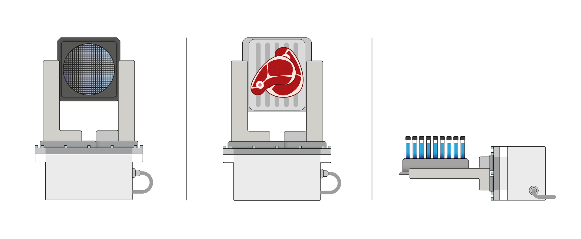 - Dankzij het gebruik van PET, PEAK, roestvrij staal of goedgekeurde coatings in combinatie met hun geschiktheid voor cleanrooms, kunnen deze grijpers worden gebruikt in de elektrische, farmaceutische, medische, cosmetica- en voedingsmiddelenindustrie. Reinigen kan, afhankelijk van de uitvoering, met waterstofperoxide.