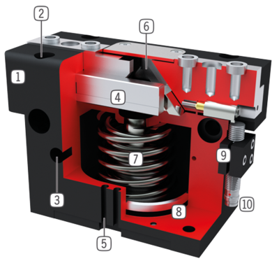In de cilinderruimte gemonteerde veer als energieopslag - Positiebepaling
