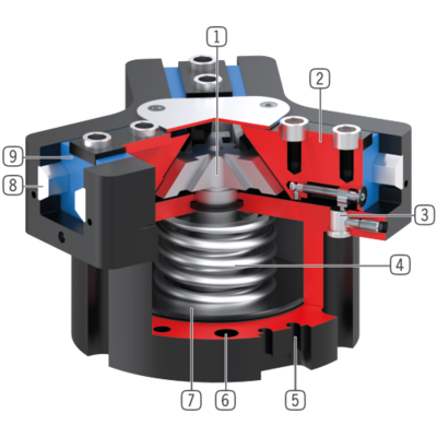 In de cilinderruimte gemonteerde veer als energieopslag - Sensorsleuf