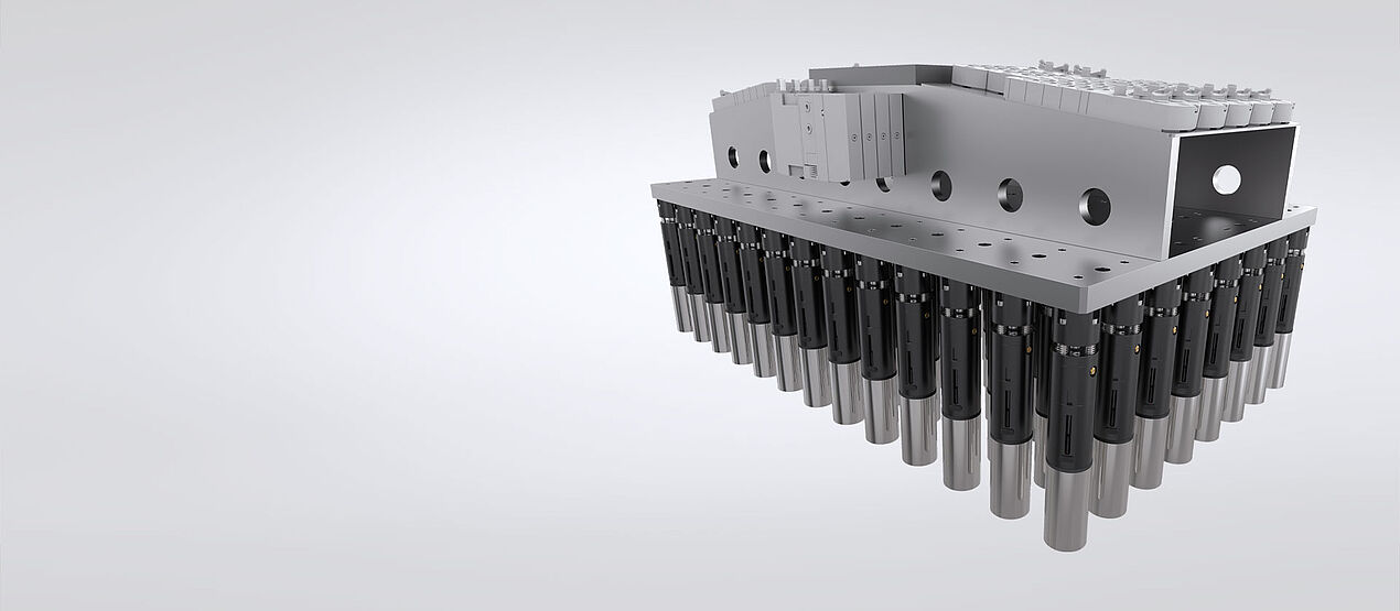 Het grijpen van ronde cellen in de productie voor elektrische voertuigen is een speciale uitdaging. De ronde cellen moeten in het proces worden verzameld, d.w.z. zo dicht mogelijk bij elkaar worden gebracht om de beperkte ruimte in het voertuig optimaal te benutten. Dit is alleen mogelijk als de grijper zich in de schaduw van de batterij bevindt.