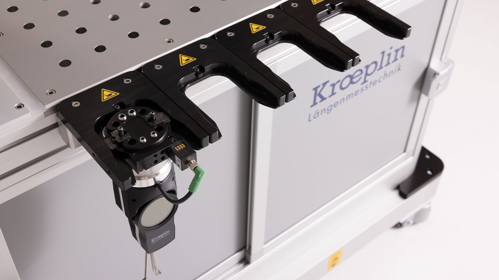 Meten tijdens productie is een onmisbaar onderdeel van moderne productieprocessen - vooral voor kleine en middelgrote series en bij loonproductie. Maar hoe kunt u ervoor zorgen dat binnen- en buitendiameters of groefgeometrieën nauwkeurig en efficiënt worden gemeten, zelfs met variërende componenten? Kroeplin GmbH gaat deze uitdaging aan met een integratief platform: de Kroeplin Measuring Robot (KMR), die werd ontwikkeld om volledig geautomatiseerde kwaliteitscontroles te integreren in de productie. Het hart van de KMR is een flexibel wisselsysteem waarmee verschillende meettoestellen in enkele seconden kunnen worden uitgewisseld. Dit wordt mogelijk gemaakt door de Zimmer FWR50 serie gereedschapswisselaar, die puur mechanisch en zonder extra energiebronnen kan worden bediend. Grijperoplossingen van de Zimmer Groep werden geïntegreerd voor het hanteren van de componenten. De HRC grijper uit de HRC03 serie zorgt ervoor dat pick-and-place taken niet alleen nauwkeurig, maar ook bijzonder efficiënt zijn. De KMR wordt aangevuld met een drieklauwgrijper uit de GPD5000-serie, die speciaal ontworpen is voor ronde componenten en dus zorgt voor de nodige herhalingsnauwkeurigheid bij het klemmen.