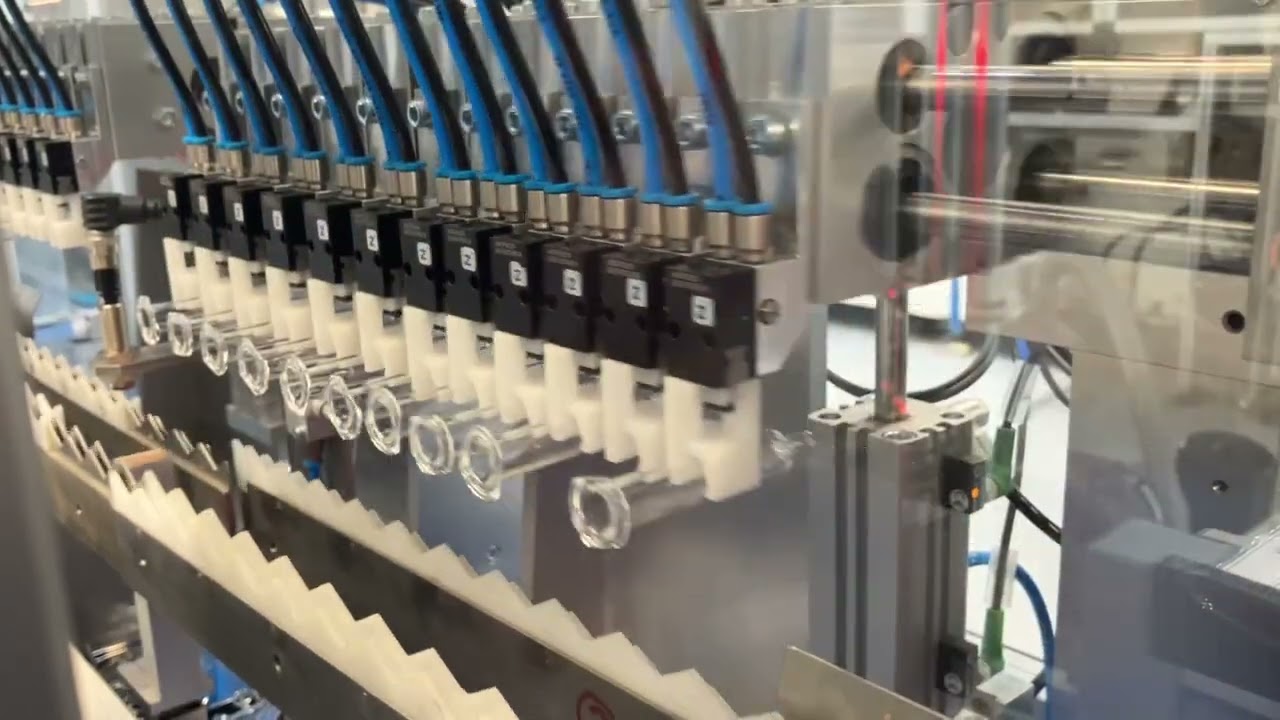 Voor een preciezere en betrouwbare handling van glazen spuiten zijn 2x12 2-klauw parallelgrijpers uit de MGP800-serie in serie geïntegreerd en uitgerust met individueel ontwikkelde grijpervingers. De MGP800-serie maakt indruk met: