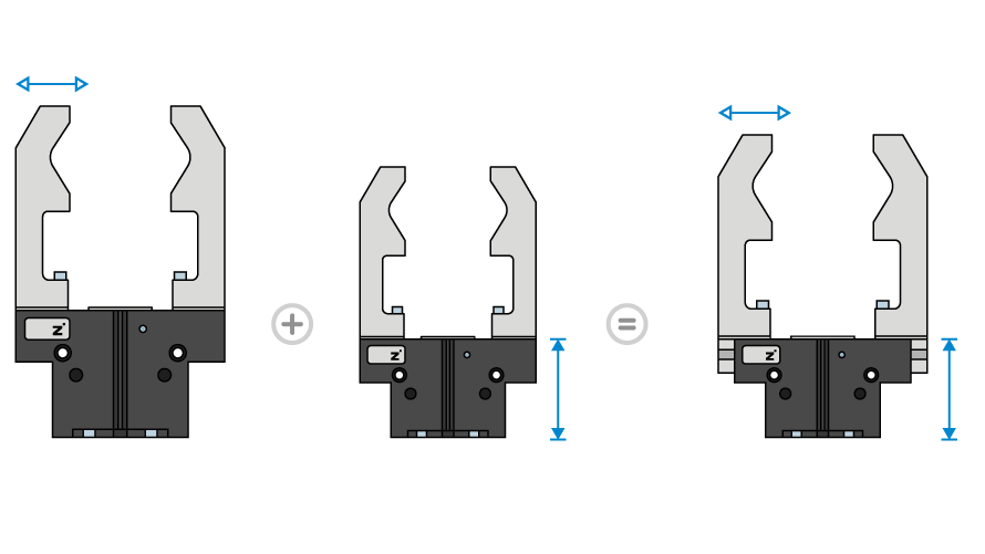长行程 型号以更紧凑的安装尺寸,实现更大的行程。优势在于:在同等行程下,您能获得更轻量化、更具成本效益的机械抓手。在重量、价格与性能之间无需妥协,尽享极致灵活性。