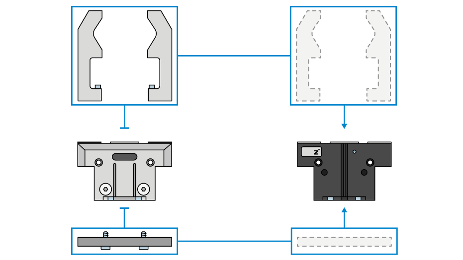 如果运行条件发生变化,只需稍作调整即可升级到 钢制线性导轨 或 IP 防护型号,高效、灵活且无需重新规划。这得益于 5000 产品系列丰富的配件与安装尺寸配置。亮点包括:调整型手指——无需工具即可调整夹持范围、可更换手指——支持快速更换,以及高精度传感器——可通过 IO-Link 或模拟信号对整个行程范围进行可靠监控。